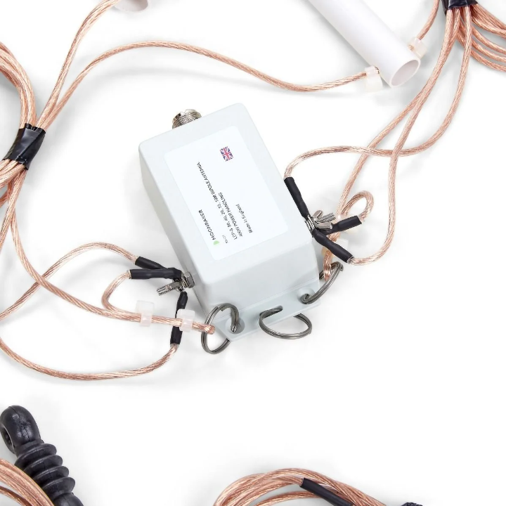 This is fitted with a M0CVO 1:1 BALUN at the feedpoint and can be fed with standard 50ohm coax. An inline ATU is recommended, especially in the 80m band to extend the tuning range.