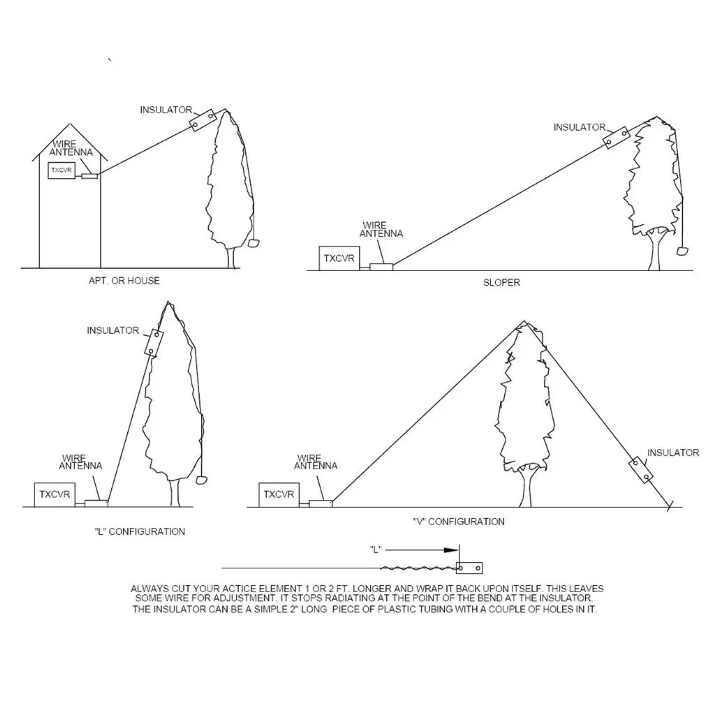Depending on the gauge wire you opt to use, the radiating element may be stored wrapped around the device for storage and transportation. Protection will likely be required when used outdoors to protect from rain, moisture, wind, etc