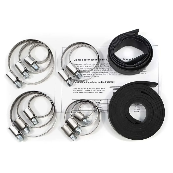 However, clamps are the perfect method to securely lock the segments of the fiberglass mast for a long period. They are especially suitable for permanent installations and superior to all other locking mechanisms (tape, glue, cable ties,.) They have a very strong grip, yet they can be removed easily