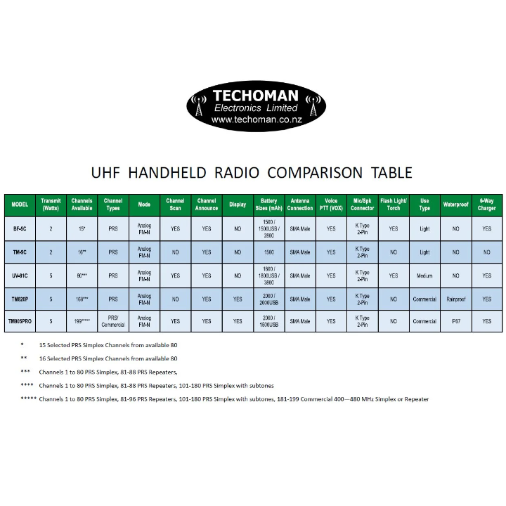 Techoman TM820P 5 Watt Power UHF PRS Walkie Talkie Radio with LED Hidden Display and Voice Prompts.