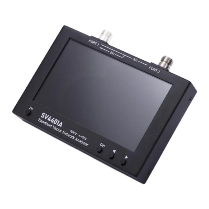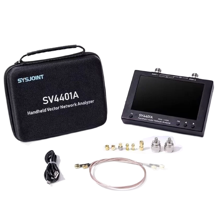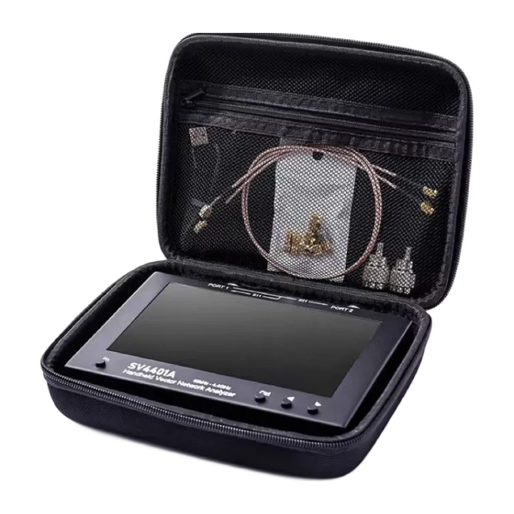 The SV4401A is a handheld Vector Network Analyzer (VNA) covering a frequency range of 50 kHz to 4.4 GHz, designed for accurate S11 and S21 measurements. It offers a dynamic range of 75 dB for S21 and 50 dB for S11, providing reliable performance for a wide range of RF testing applications.