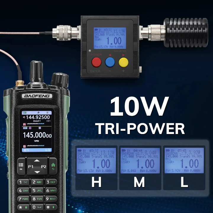 Stay connected anywhere with the Baofeng UV-32 Analog-Only Dual-Band Ham Radio, designed for ham operators. Delivering up to 10W of high-power transmission on VHF and UHF, it ensures reliable long-distance communication in any situation. Its wide multi-band reception lets you tune into FM radio, AM airband, and extended UHF/VHF frequencies - keeping you informed whether you’re monitoring and chatting on local repeaters, working simples or listening to aviation traffic.